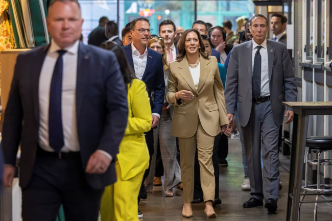 Kamala Harris and Josh Shapiro, Reading Terminal Market, Philadelphia, Pennsylvania, July 13, 2024. REUTERS/Kevin Mohatt
