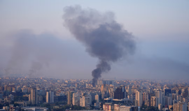 Smoke billows over Beirut’s southern suburbs, amid the ongoing hostilities between Hezbollah and Israeli forces, as seen from Sin El Fil, Lebanon October 6, 2024. REUTERS/Joseph Campbell