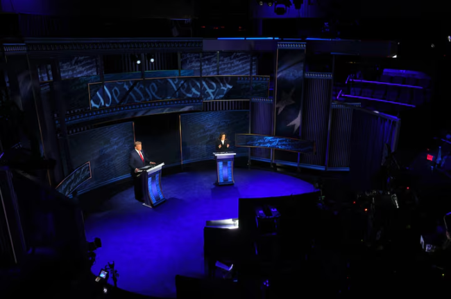 Republican presidential nominee, former President Donald Trump and Democratic presidential nominee, Vice President Kamala Harris attend the debate. REUTERS/Brian Snyder