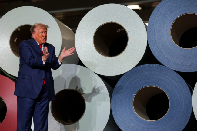 Republican presidential nominee and former U.S. President Donald Trump makes a campaign stop at manufacturer FALK Production in Walker, Michigan, U.S. September 27, 2024. REUTERS/Brian Snyder/File Photo
