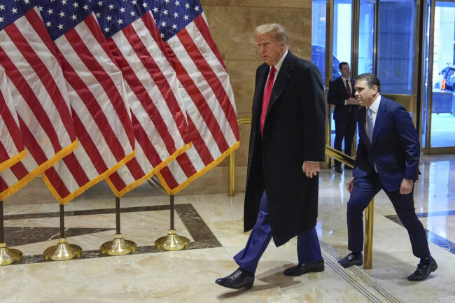 Former President Donald Trump arrives for a news conference Monday, March 25, 2024, in New York. | Frank Franklin II/AP